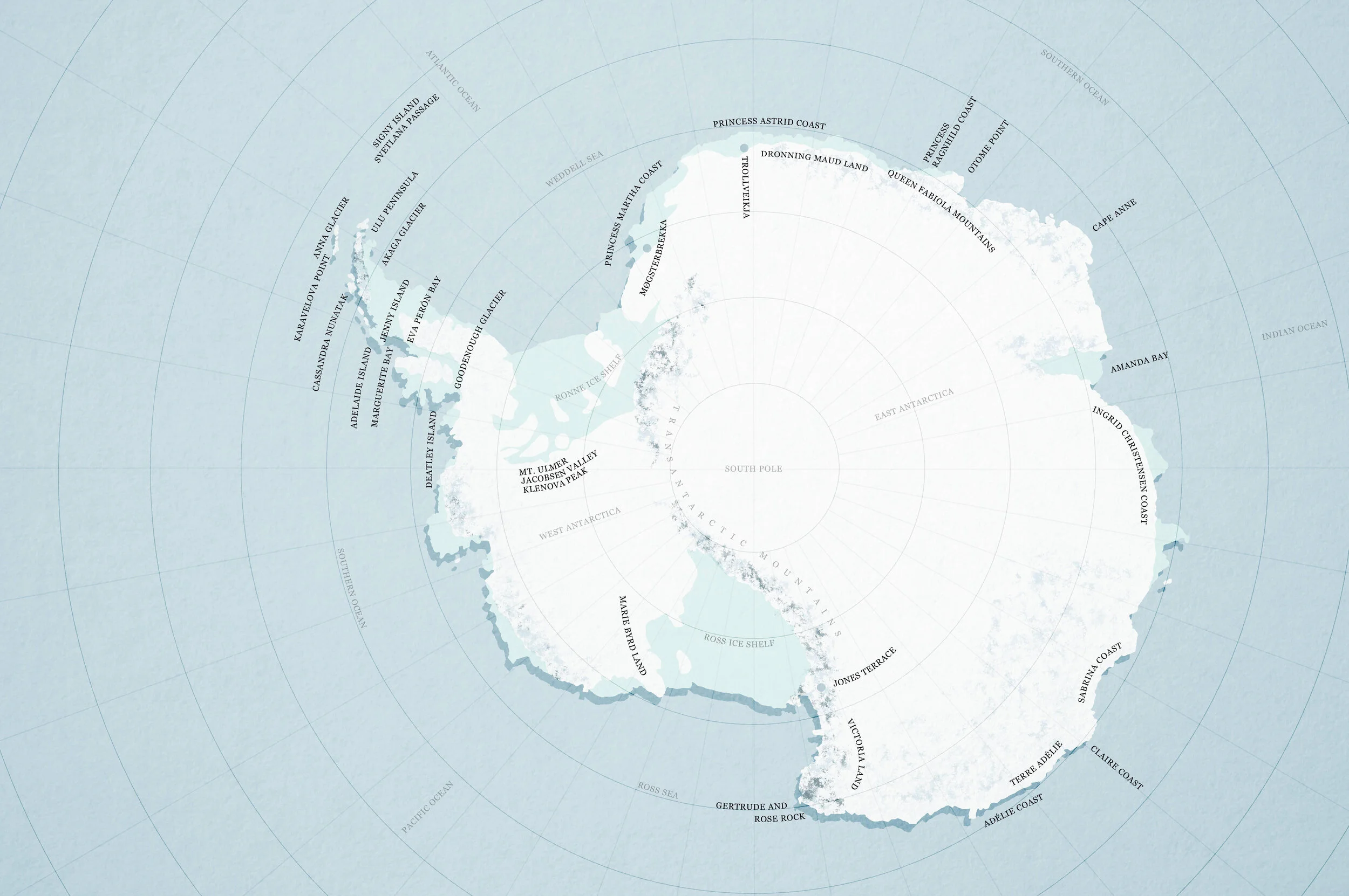 OUTPUT: SAMPLE OF CROWD-MAPPED (RE)MAP OF FEMALE PLACE NAMES IN ANTARCTICA.